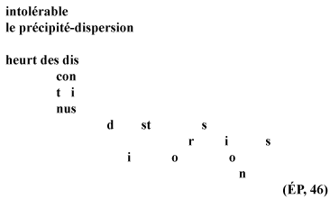 C’est pourquoi, reprenant, tout en les restructurant graphiquement de façon à bien faire apparaître le strict parallélisme des contraires, les termes même d’André Breton,(12) le poète d’Éclats affirme: